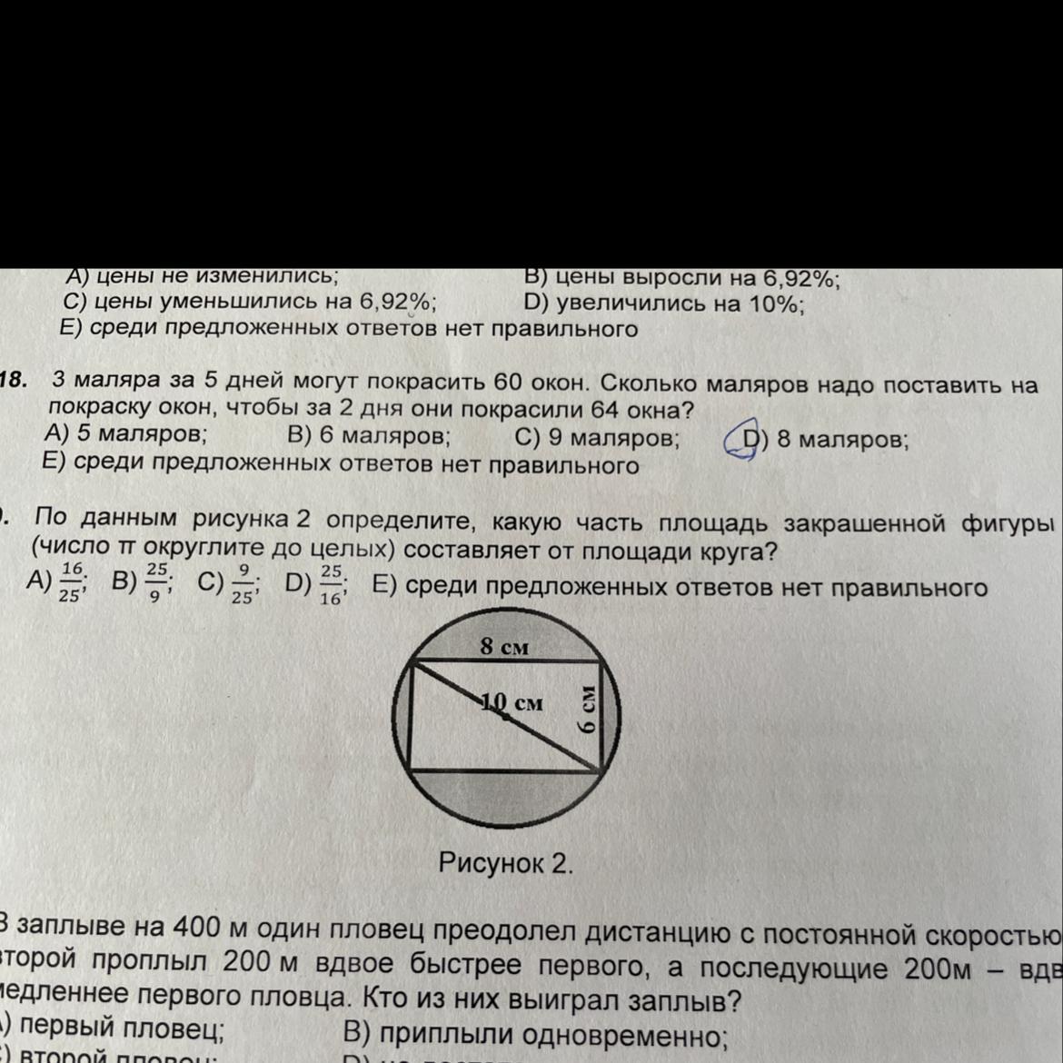 19. По данным рисунка 2 определите, какую часть площадь закрашенной фигуры