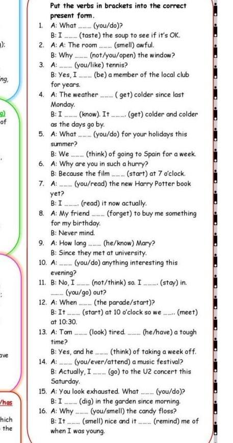 A: What are you doing for your holidays this summer? B: We are thinking of going to Spain for a week.