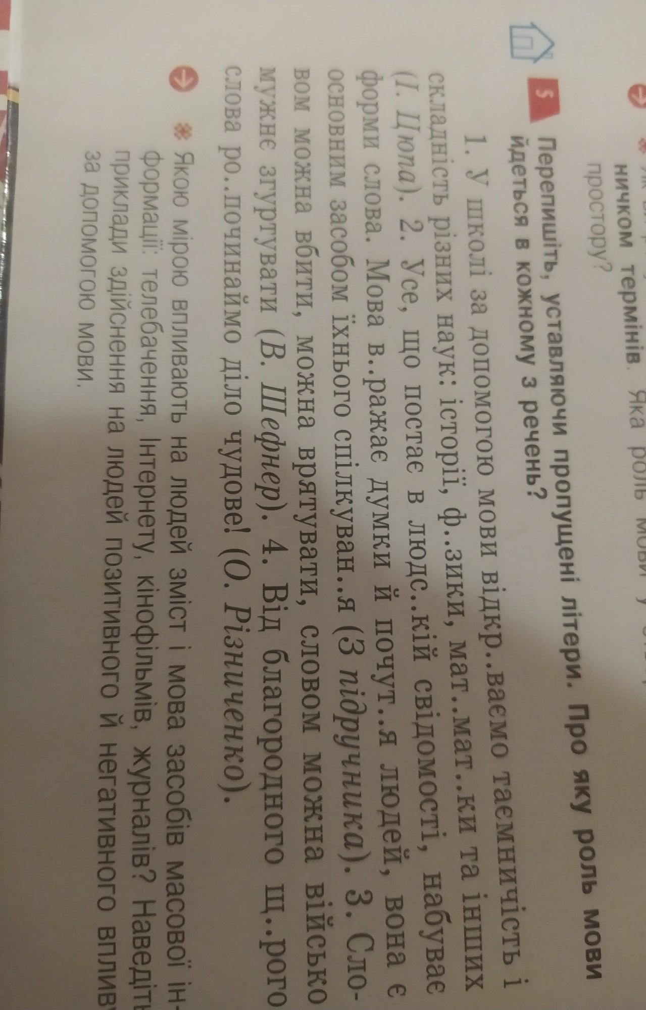 перепишіть, уставляючи пропущені літери. про яку роль мови йдеться в кожному з речень?