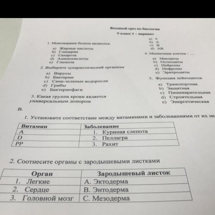 установите соответствие между витаминами и заболеваниями от их недостатка. 1-ое задание
