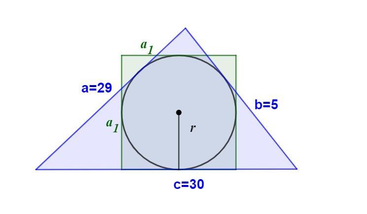 Знайди сторону правильного чотирикутника, описаного навколо кола , якщо навколо цього кола описано трикутник зі сторонами 5см , 29см , 30 см
