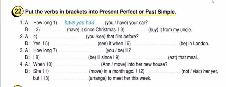 Ann: How long have you had your car? Bill: I have had it since Christmas. I bought it from my uncle.