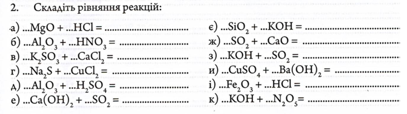 Скласти рівняння реакцій, мінімум 6 рекцій треба скласти
