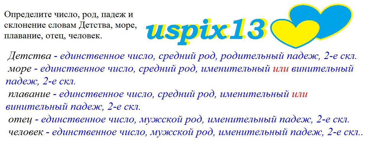 срочно! пожалуйста!!!! определите число, род, падеж и склонение словам Детства, море, плавание, отец, человек. Даю 40 балов!! срочно нужен ответ!!!!