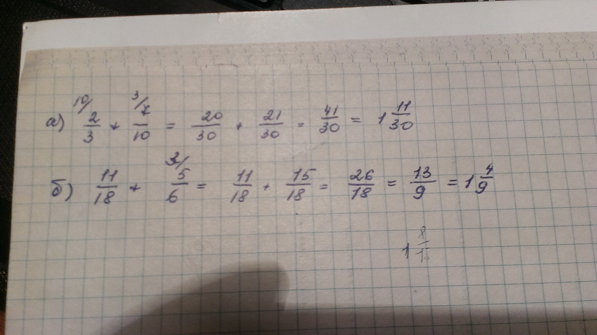 Выполните сложение и представьте результат в виде смешанной дроби: а) 2/3+7/10; б) 11/18+5/6. СРОЧНО!!!!