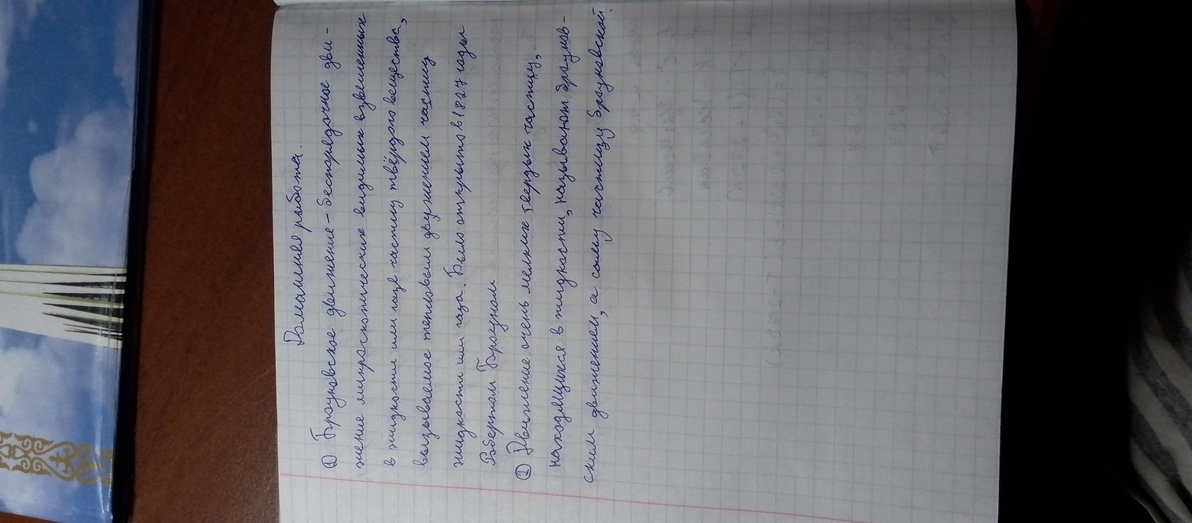 1. Опишите опыт Броуна. 2. Какая частица называется броуновской? 3. Опираясь на рисунок 1.2, объясните характер дв частицы. *4. Наблюдая за движением броуновской частицы о характере движения молекул? Аргументируйте 5. Дайте объяснение явлению диффузии. 6. Приведите примеры явления диффузии в газах и е ■7. Как зависит интенсивность диффузии от темпе *8. Возможно ли, чтобы броуновское движение прекрс