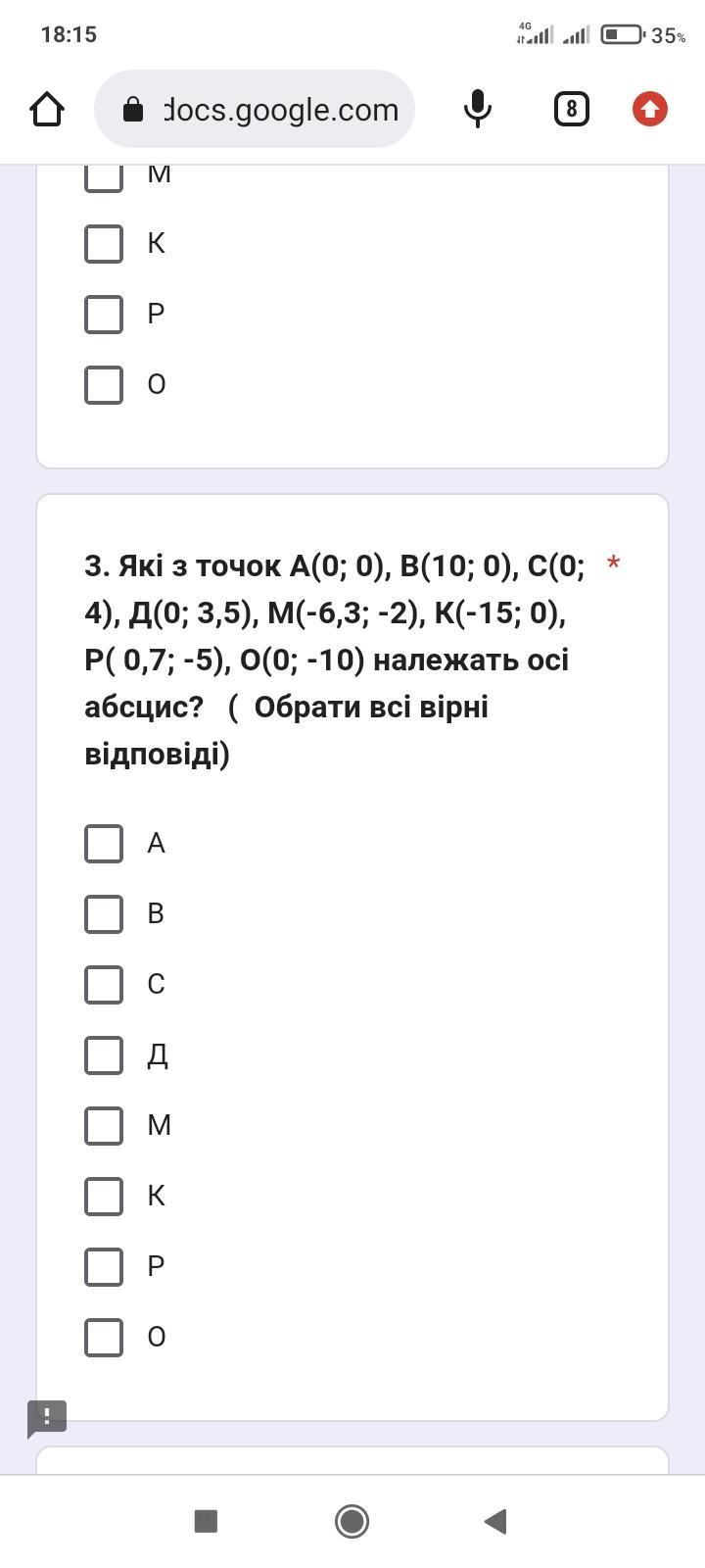 Відповідь: точки які належать осі абсцис: А;В;К;