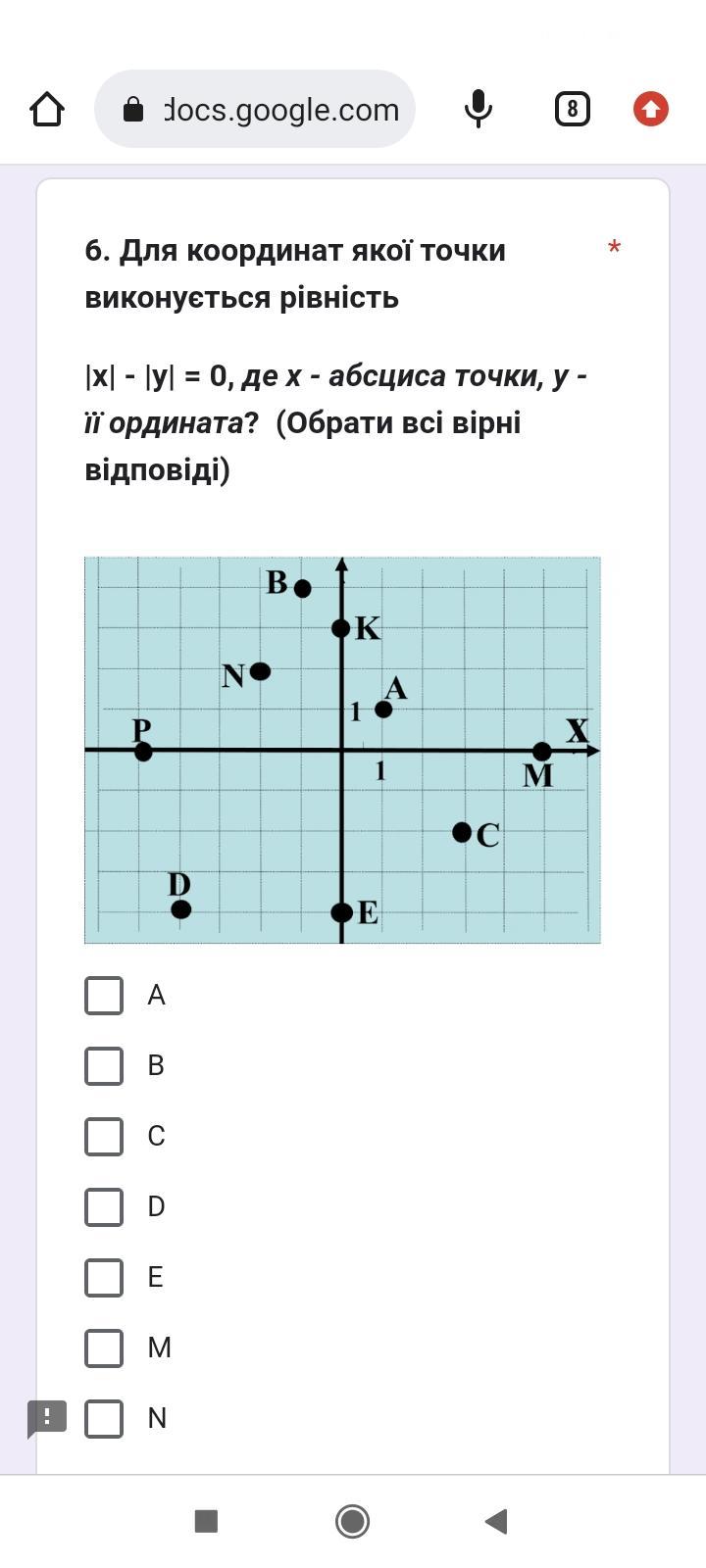Відповідь: точки А;N;D мають координати при яких виконується рівність |х|-|у|=0
