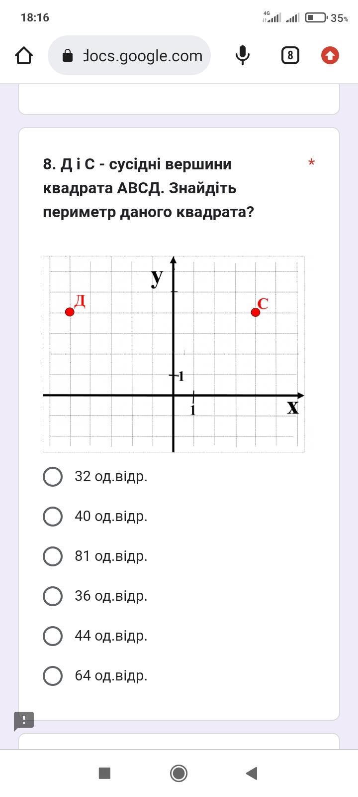 Відповідь: периметр квадрата дорівнює 36од.відр