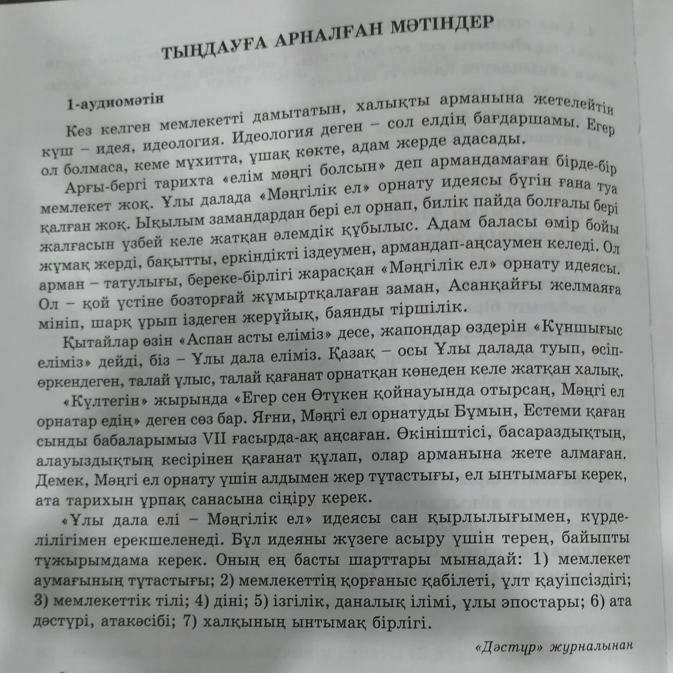 Мәтінін негізгі ойы:Идеологиясын ештенке болмайтын еді осы тұрып жатқан жерде .Және адамдар мәңгілік ел дегенде ойлап тапты .Мәңгілік елді жасау өте қиын.