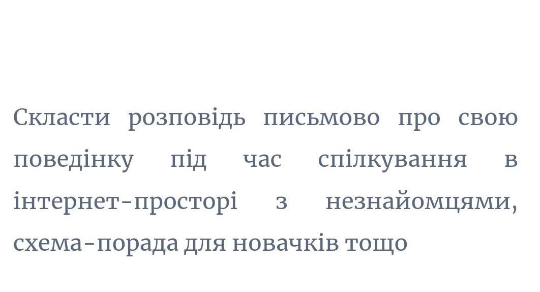 6. **Поради для новачків:** Для тих, хто тільки починає використовувати інтернет, я надаю поради щодо безпеки інтернет-спілкування, зокрема щодо вибору надійних джерел інформації та уникаємо підозрілих посилань.