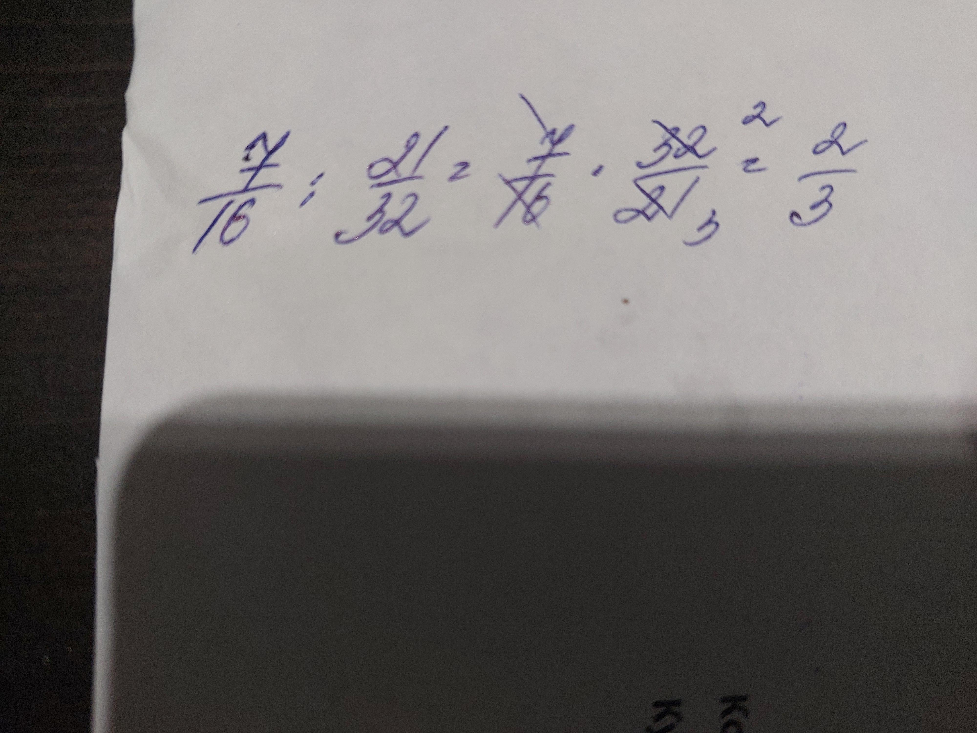 (7/16)/(21/32)=7×32/16×21=224/336=2/3=0,(6)