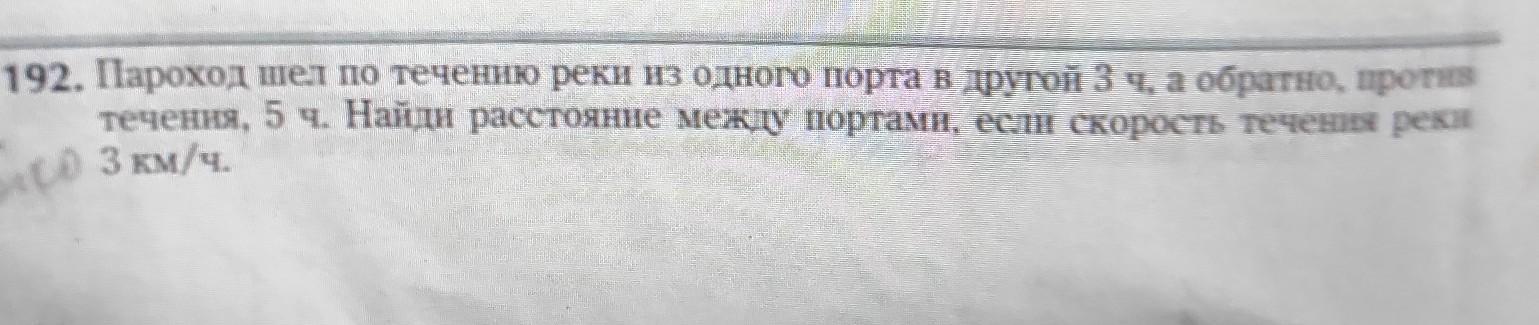 3) так как S(расстояние между портами) и против и по течению одинаковые, то S(1) = S(2) => 3(x+3) = 5(x-3)