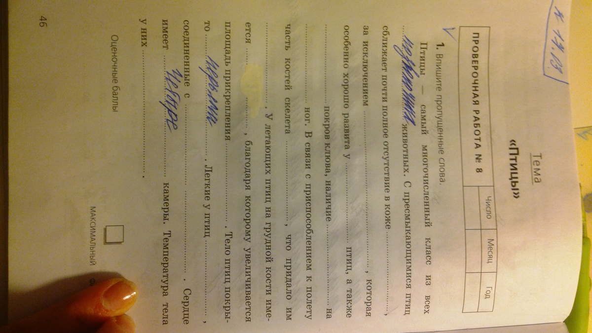 Позвоночных, желез, копчиковой, водных, тут не знаю, цевки, не знаю, редуцирована, легкость, киль, ребер (или грудины), перьями, имеют воздушные мешки (либо нет альвеол), не знаю, не знаю, четыре, 41-43 градус (высокая). В общем-то как-то так.