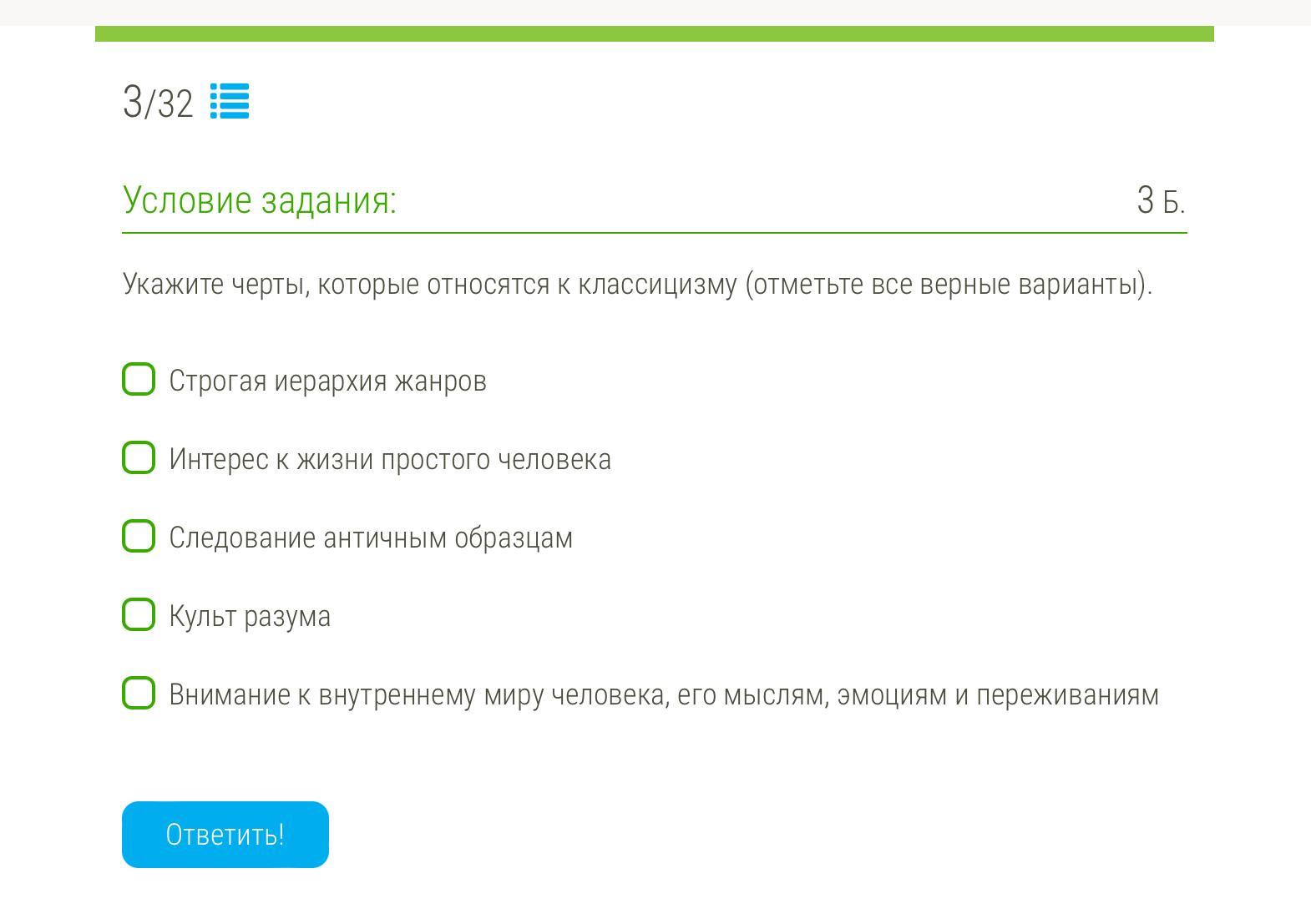 Укажите черты, которые относятся к классицизму (отметьте все верные варианты).