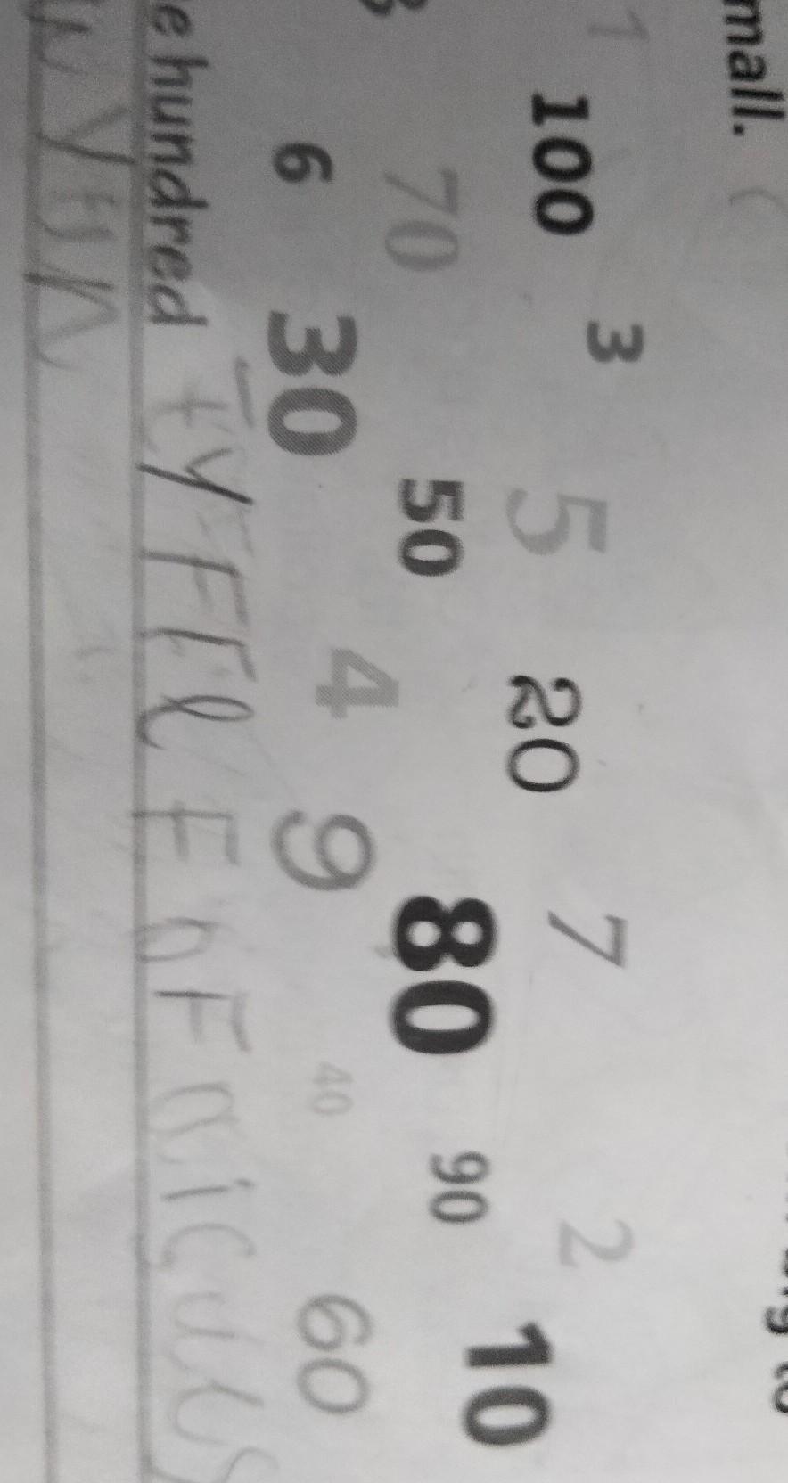 Numbers 3** Write the numbers as words from big to small. 1 0 8 100 70 6 3 30 5 20 50 7 2 80 90 40 60 49 10