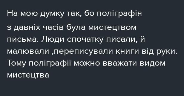 Чи є, на ваш погляд, мистецтвом поліграфія? Свою думку обґрунтуйте. Значення слова поліграфія з'ясуйте за Тлумачним словничком.