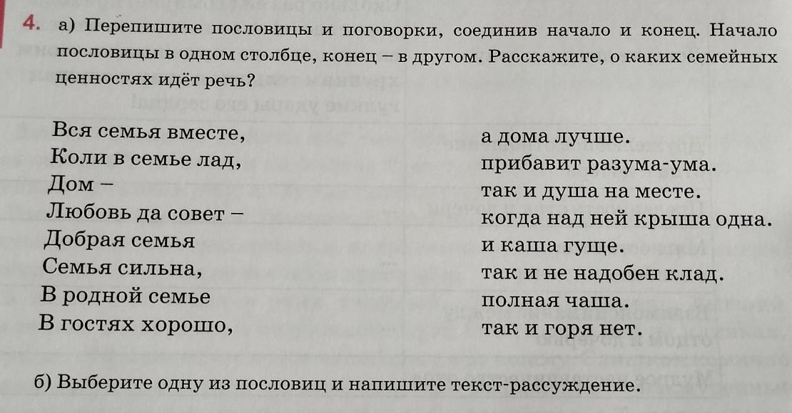 б) Выберите одну из пословиц и напишите текст-рассуждение.