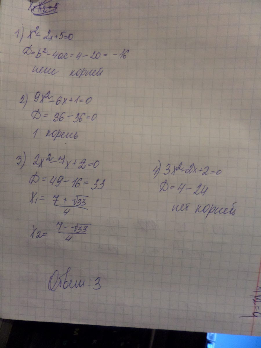 А в четвертом получается дискриминант -20.Отрицательный,следовательно,корней нет.