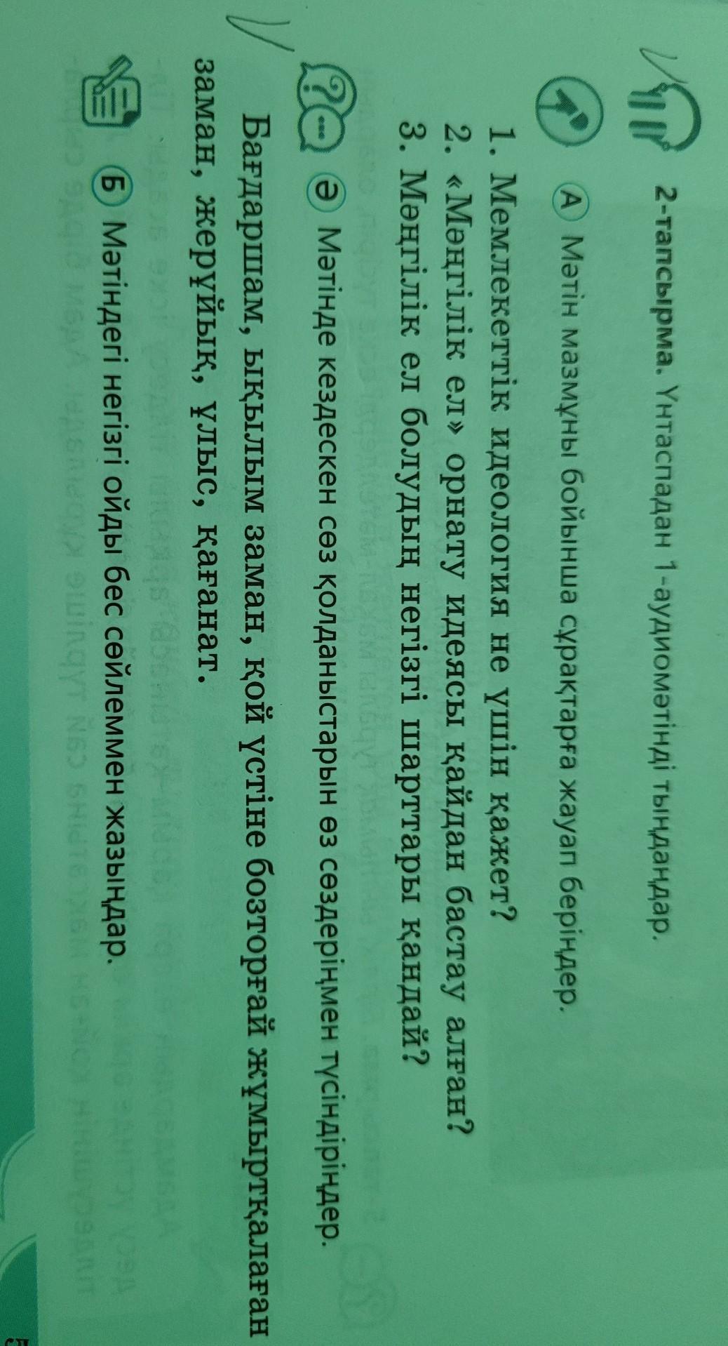 2-тапсырма. Унтаспадан 1-аудиомәтінді тыңдаңдар