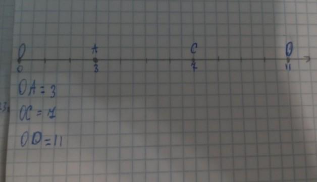 OA, OB, ОС және OD кесінділерінің ұзындықтарын сантиметр