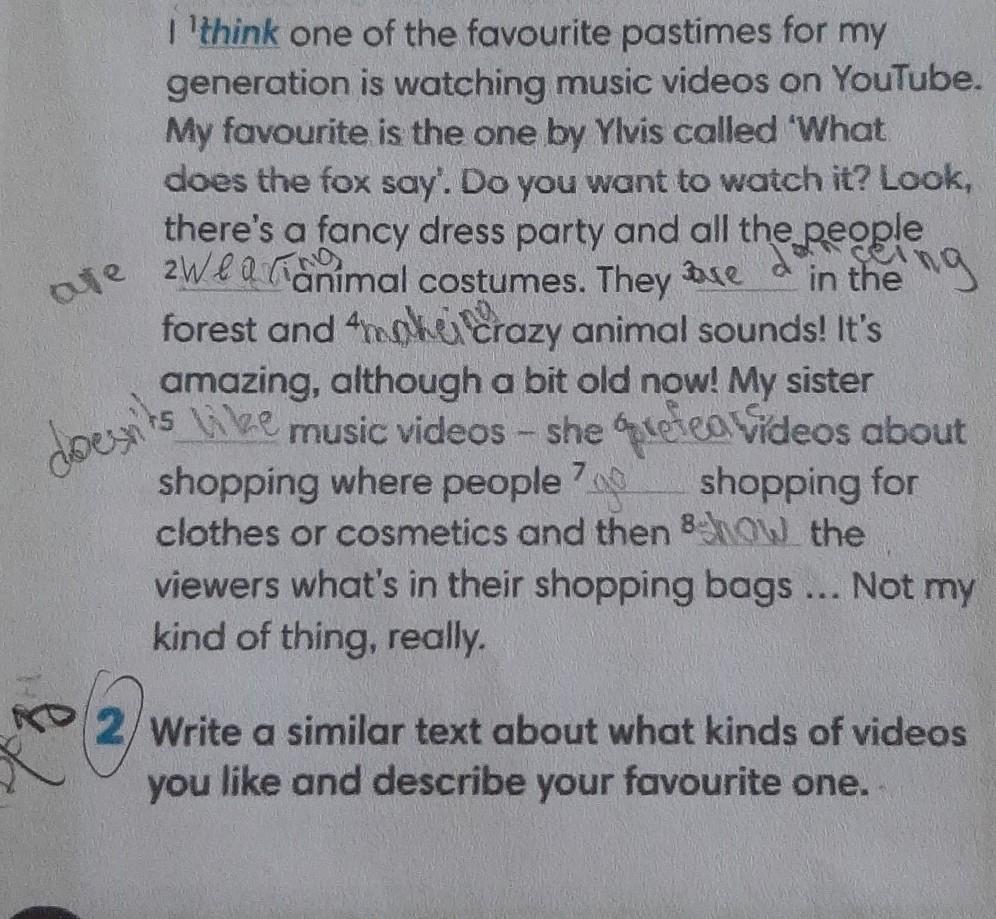 2 Write a similar text about what kinds of videos you like and describe your favourite one