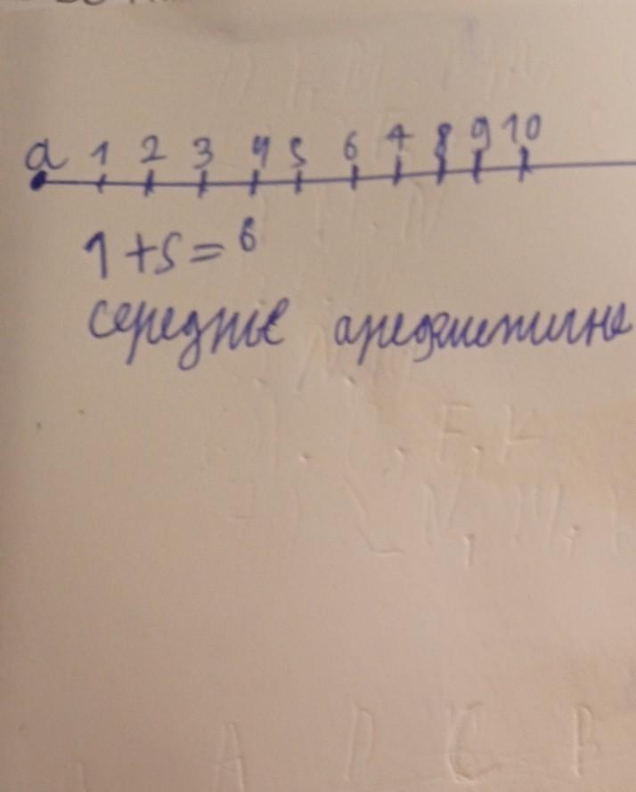 Знайди середнє арифметичне чисел 1 і 5. Познач на