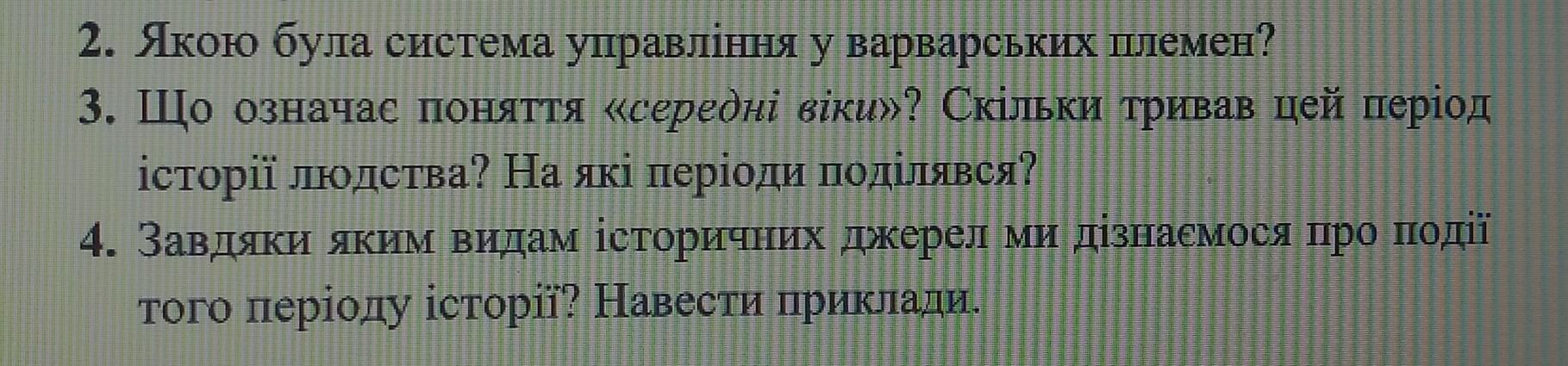 2. Поняття "середні віки" означає період історії людства, що тривав від приблизно Ѵ до ХV століття. Цей період поділявся на ранні, середні та пізні середні віки. 3. Ми дізнаємося про події того періоду історії завдяки різноманітним історичним Джерелам. Наприклад, письмовим джерелам, таким як хроніки, документи, листи, що • збереглися з того часу.