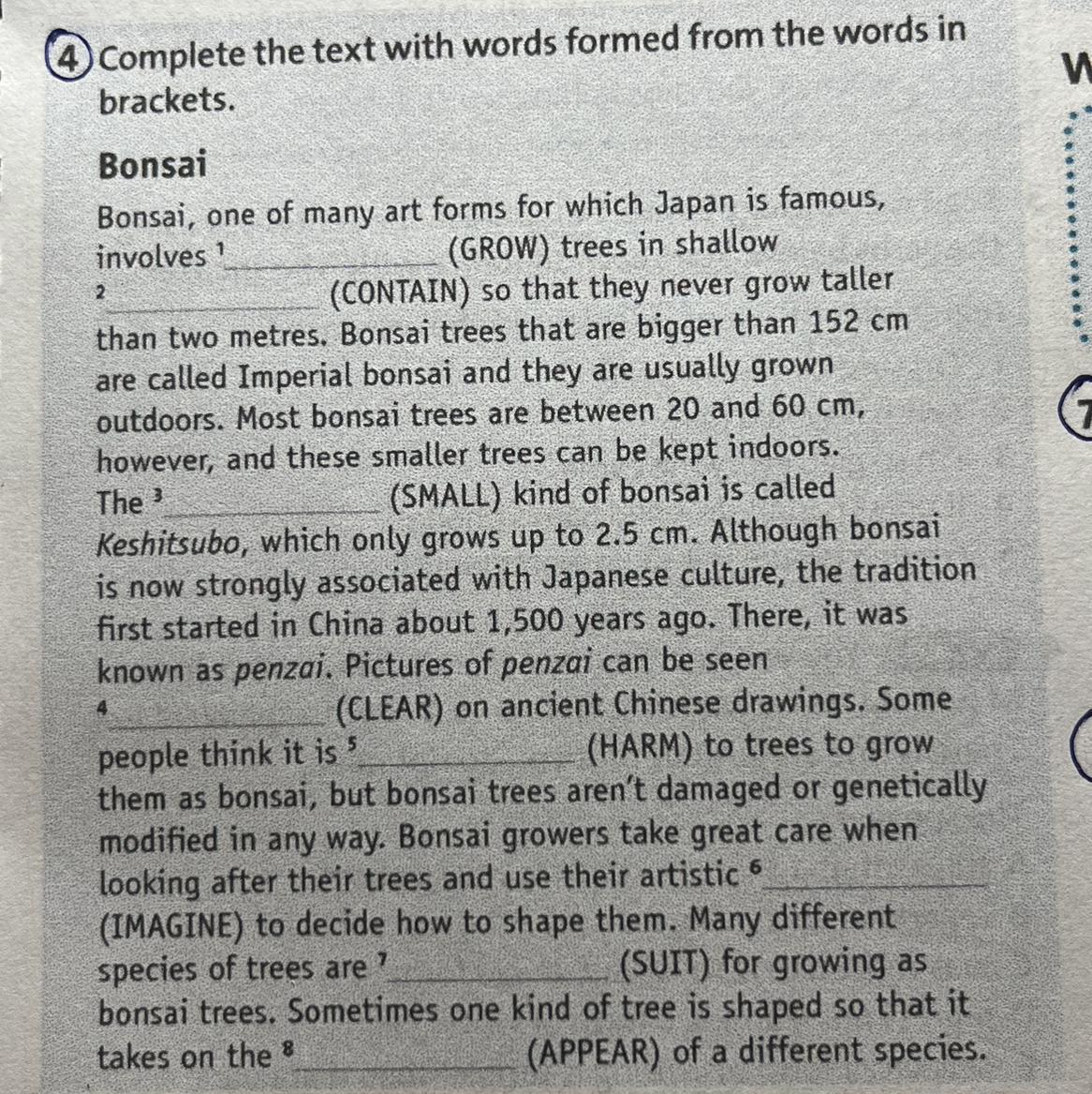 1. growing 2. containing 3. smaller 4. clearly 5. harmful 6. imaginary 7. suiting 8. appearance