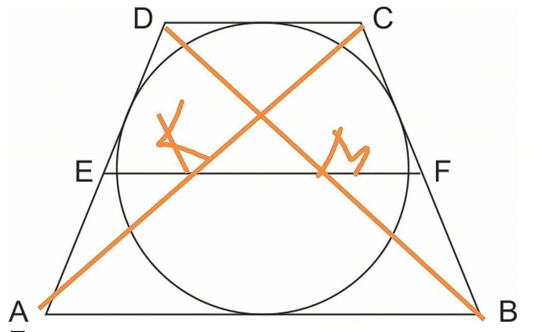CB=(AB+DC)/2,т.е средней линии трапеции ЕF.