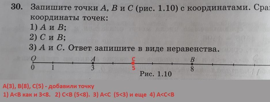 Запишите точки A, B и C (рис 1.10) с координатами. Сравните координаты точек: