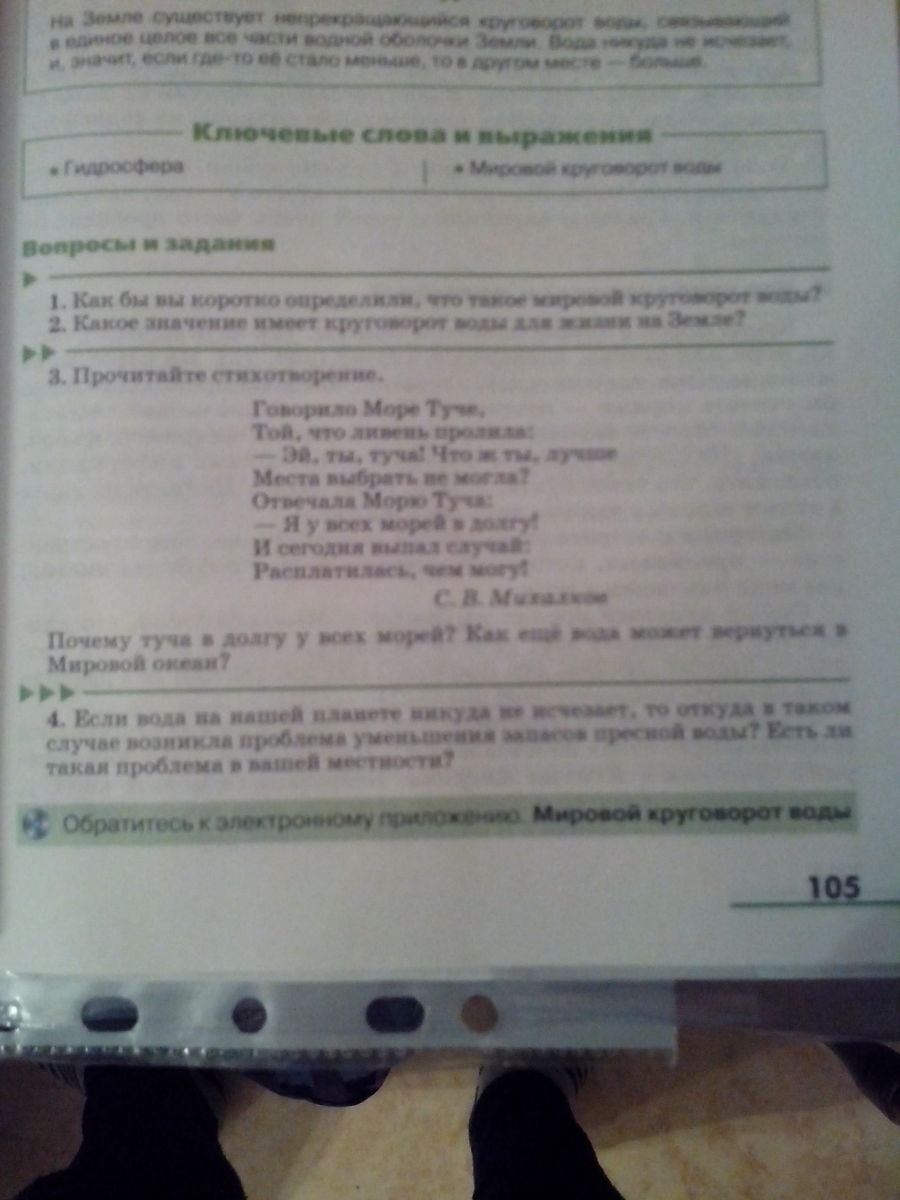 3. потому что вода с морей испаряется и в результате этого испарения образуются тучи. Не было бы морей - не было бы туч.Еще вода в Мировой океан может вернуться: через: поверхностный сток (реки), подземный сток (подземные воды, ручьи), через осадки