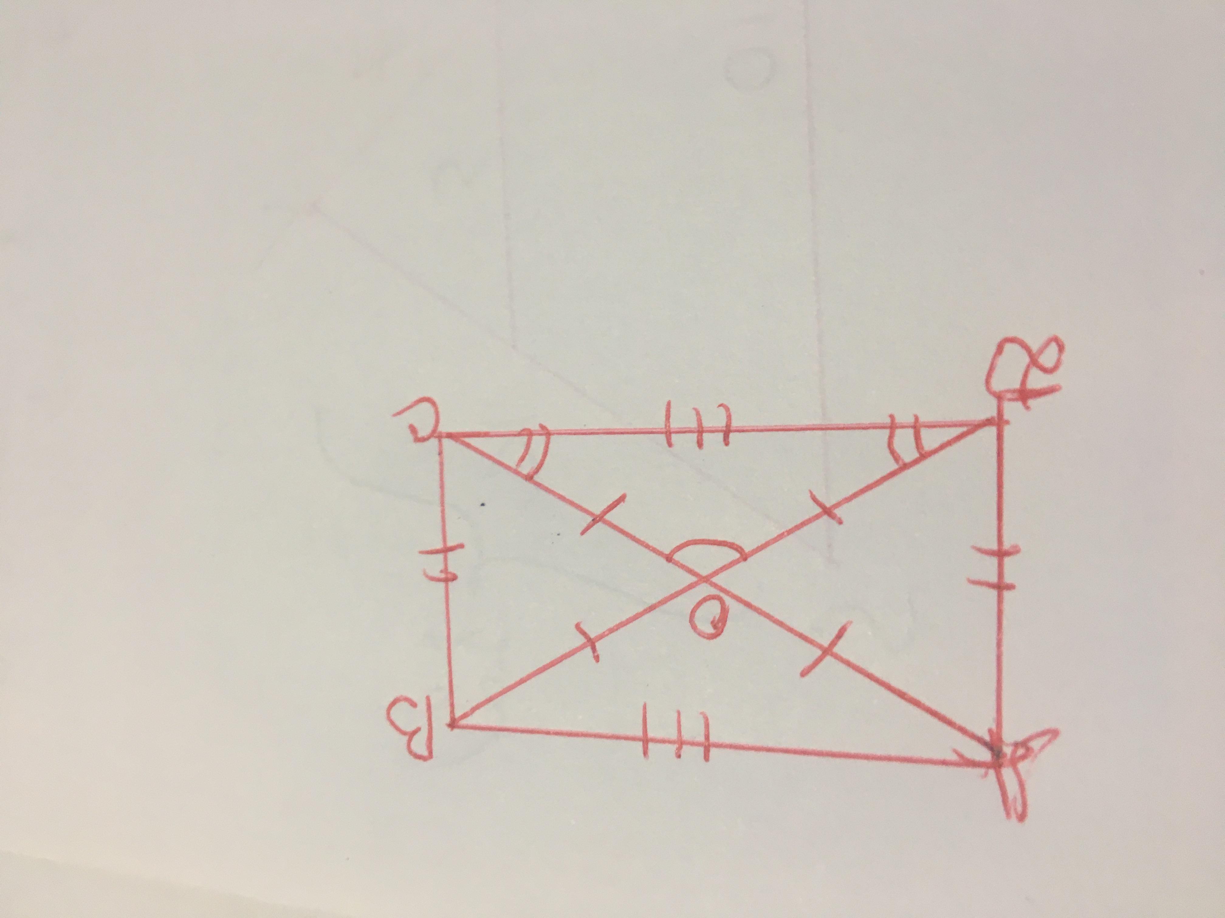 Диагонали прямоугольника в точке пересечения делятся пополам,и делят прямоугольник на две пары равнобедренных треугольников