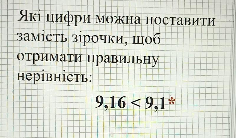 Які цифри можна поставити замість зірочки, щоб отримати правильну нерівність: 9,169,1*