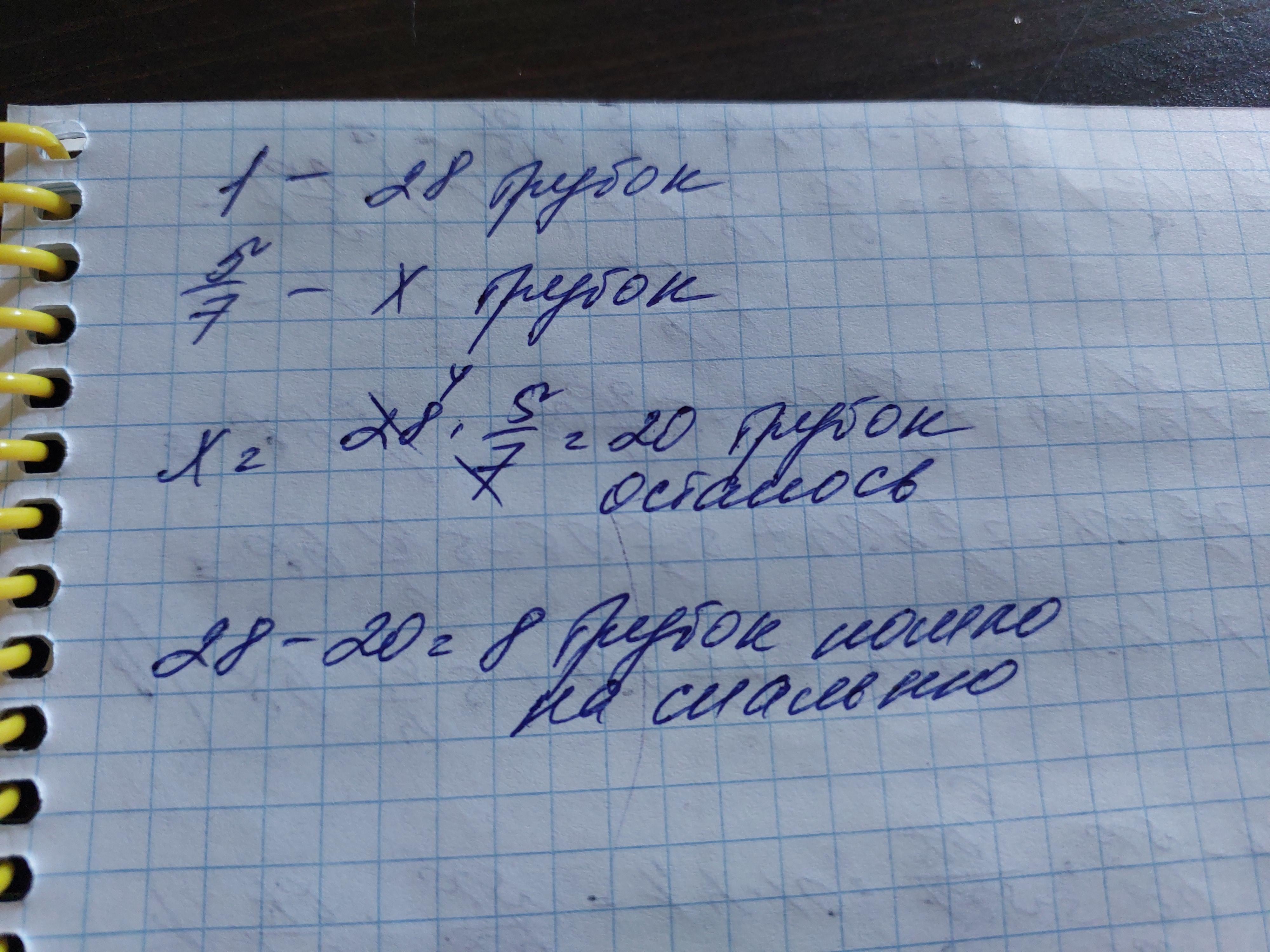 для ремонта квартиры купили 28 трубок обоев. после оклейки спальни осталось 5/7 всех обоев. сколько трубок обоев пошло на ремонт спальни?