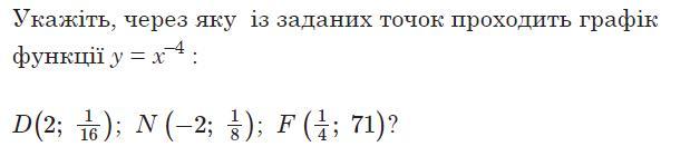 Укажіть, через яку із заданих точок проходить графік функції y = x–4 :