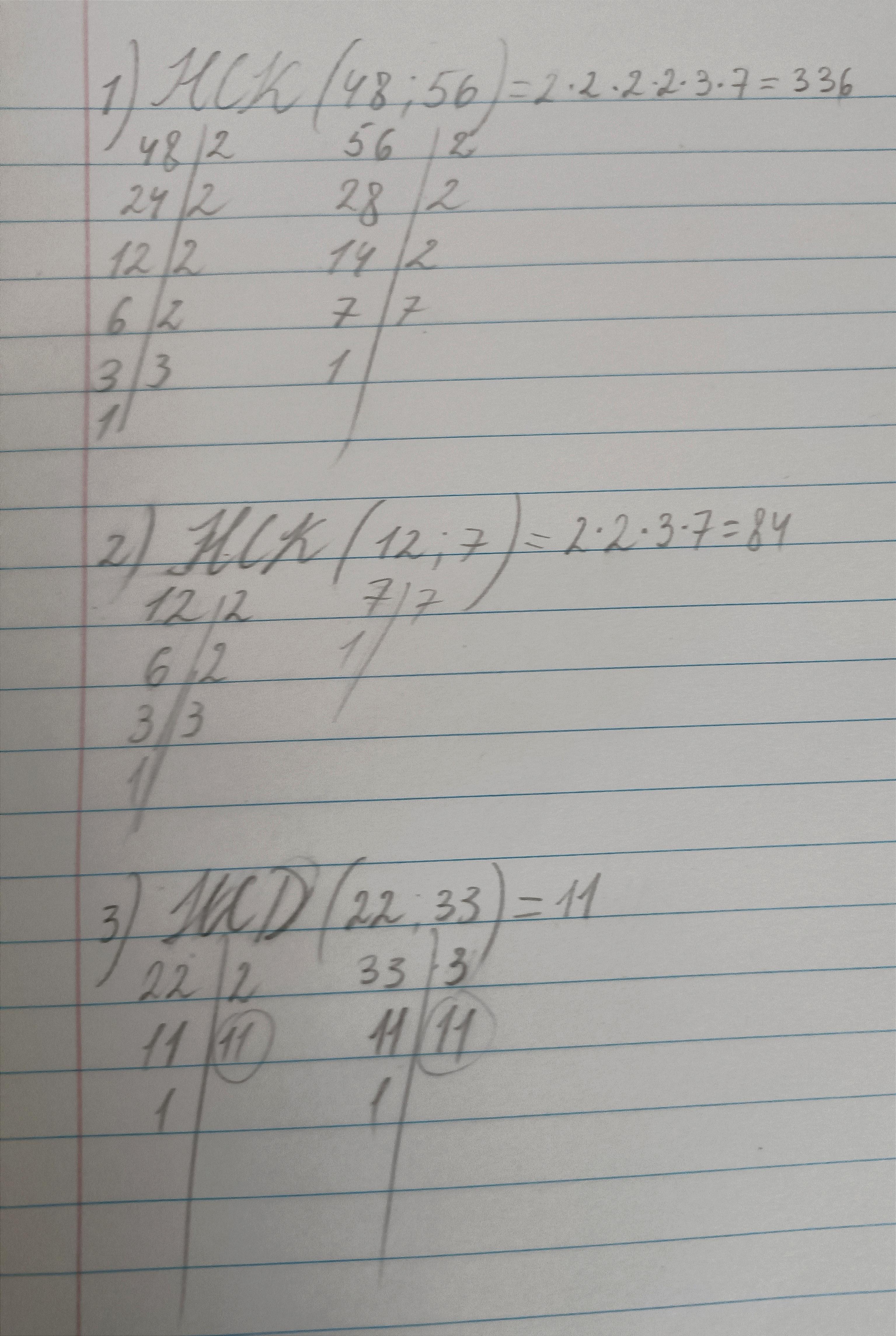 40. Знайди найбільший спільне кратне чисел: 1) 48 i 56; 2) 12 i 7; спільний дільник 3) 22 i 33; і найменше 4) 9 i 36.