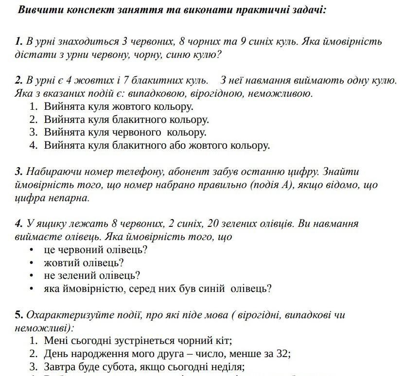 1.Щоб знайти ймовірність дістати червону, чорну та синю кулю поспіль з урни, спершу знайдемо загальну кількість куль усього кольору: