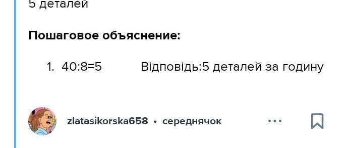 Майстер повинен виготовити за 8 год роботи 40 деталей.