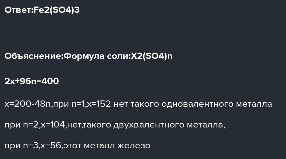 Молярна маса сульфату металічного елемента, що виявляє ступінь окиснення +3, становить 400г/моль. Напишіть формулу цього сульфату