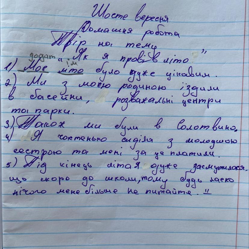 5) Під кінець літая дуже засмутилося, що скоро до школи, тому будь ласко нічого мене більше не питайте.