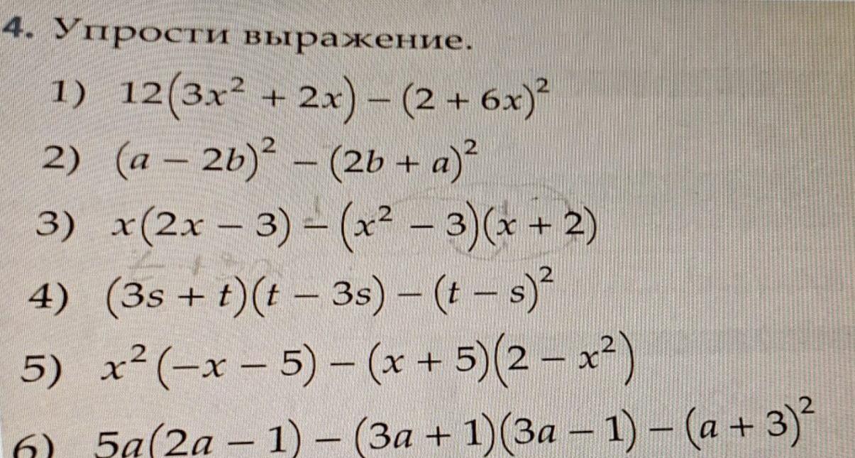 4) (3s + t)(t - 3s) - (t - s)²: