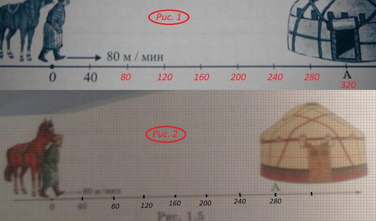 23. Алдар Косе идет к юрте Шыгайбая со скоростью 80 м/мин (рис. 1.5). На координатном луче юрте Шыгайбая соответст- вует точка А. Длина единичного отрезка равна 40 м. 11