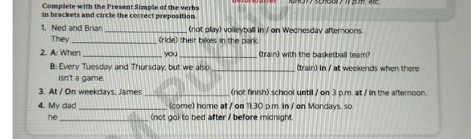 1 Ned and Brian do not play volleyball on Wednesday afternoons. They ride their bikes in the park.