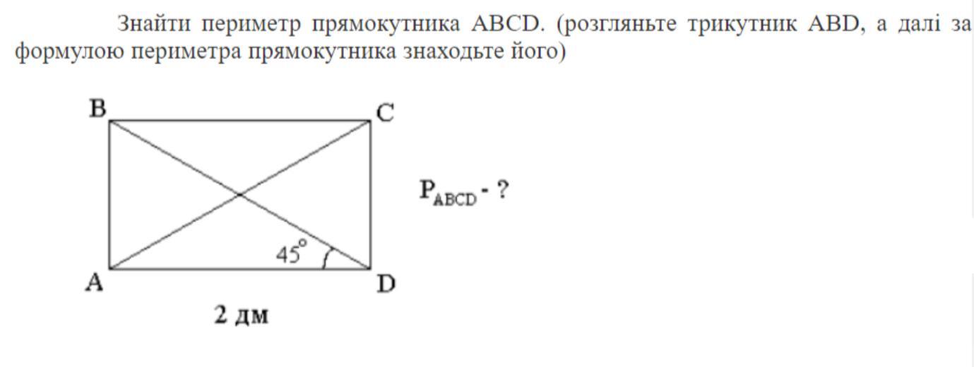 АВ=АD•tg∠ADB=2•tg45=2•1=2 дм