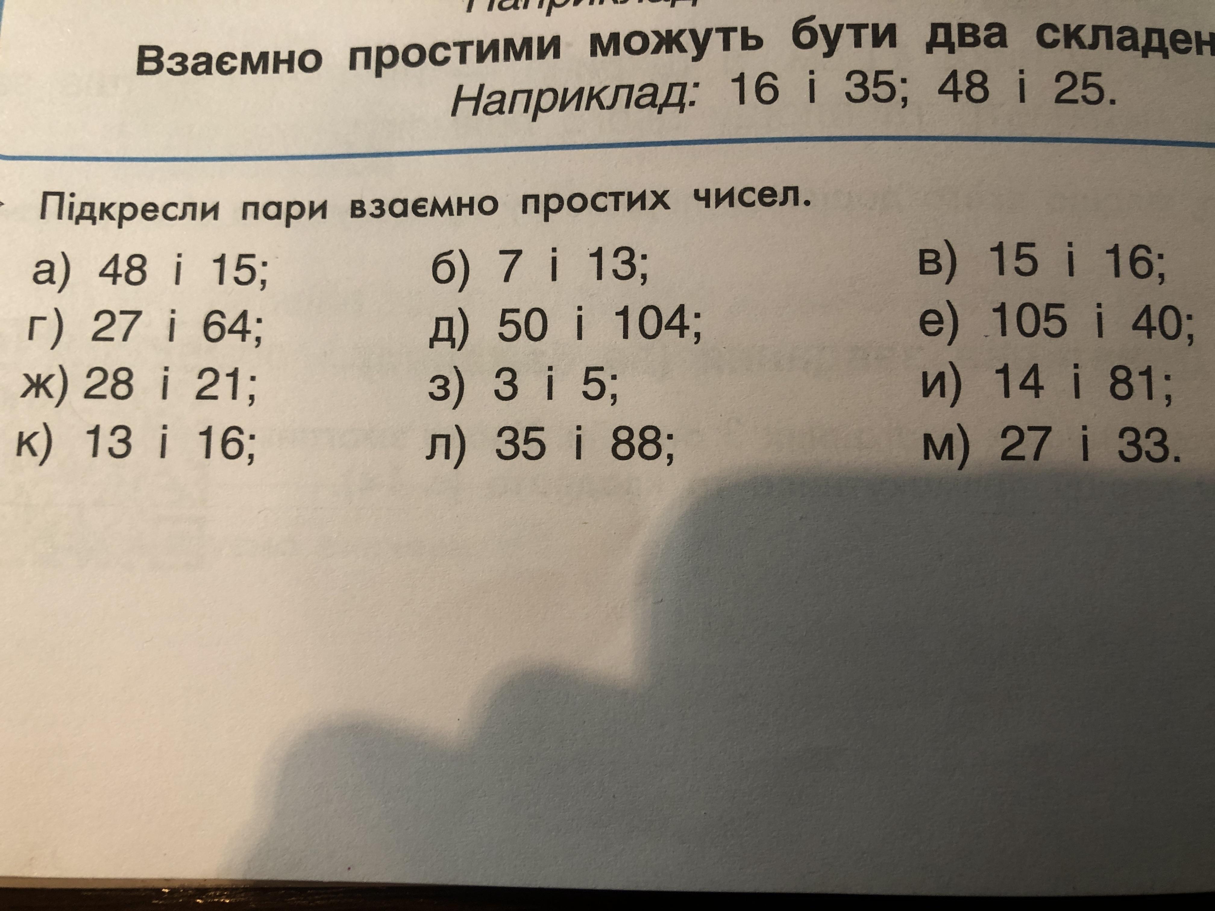 Взаємно прості числа - числа, які мають лише один спільний дільник - 1