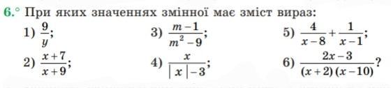5) Вираз має зміст при всіх значеннях x, крім x = 8; 1, бо тоді в знаменнику буде 0, а на 0 ділити не можна.