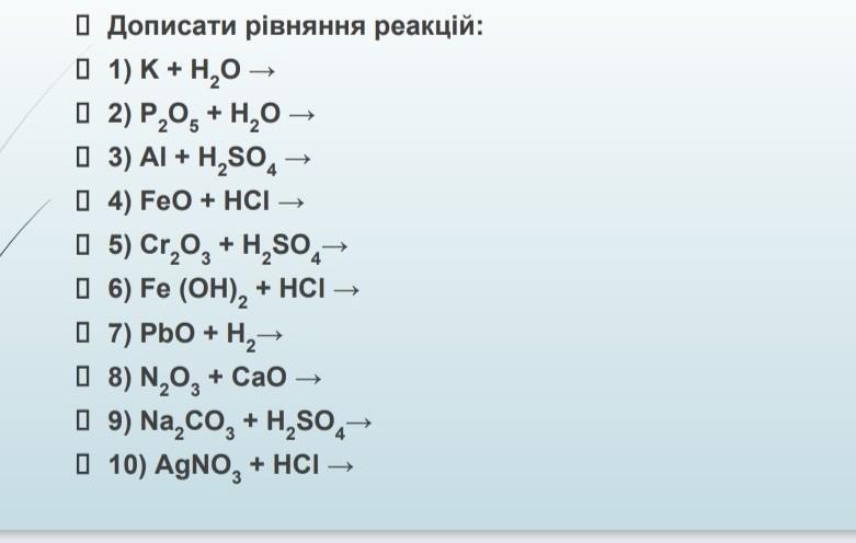 10) AgNO3 + HCl → AgCl↓ + HNO3.