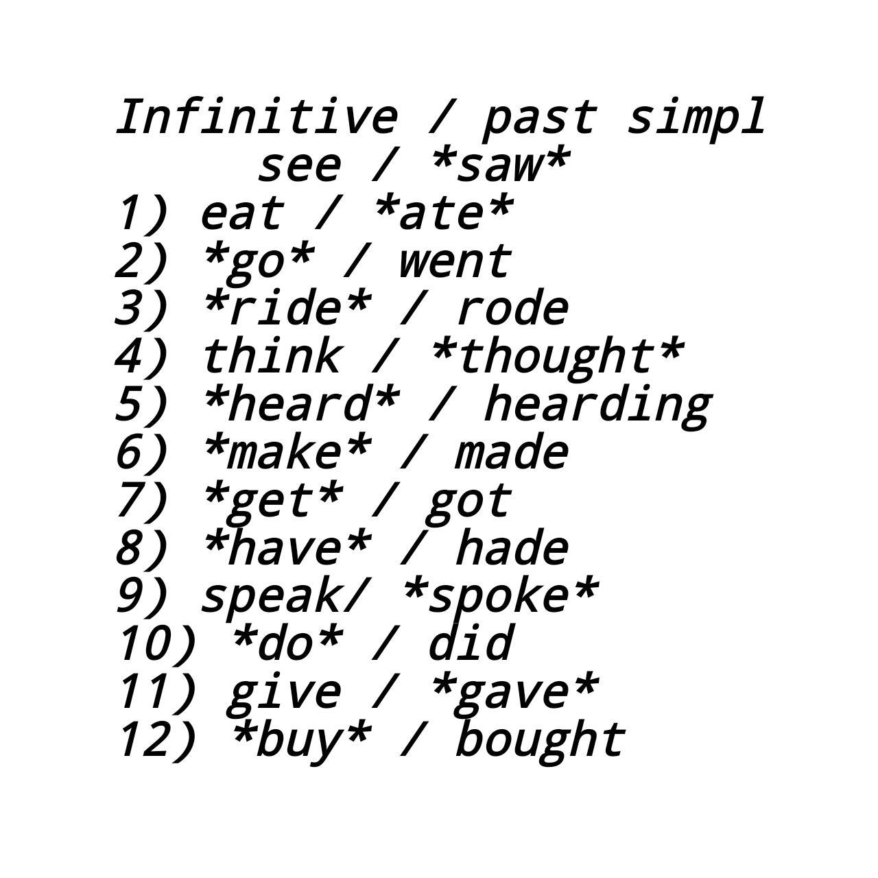 1 Look at the verbs in blue in the Memory quiz. Put them in the correct column below and then complete the table. Past simple form Infinitive see saw