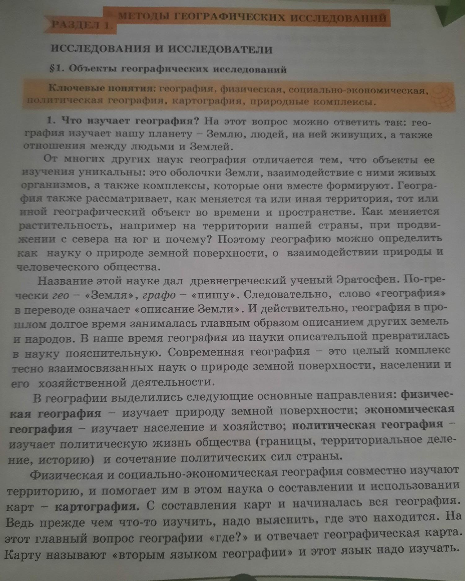 Физическая география-изучает природу земной поверхности ;